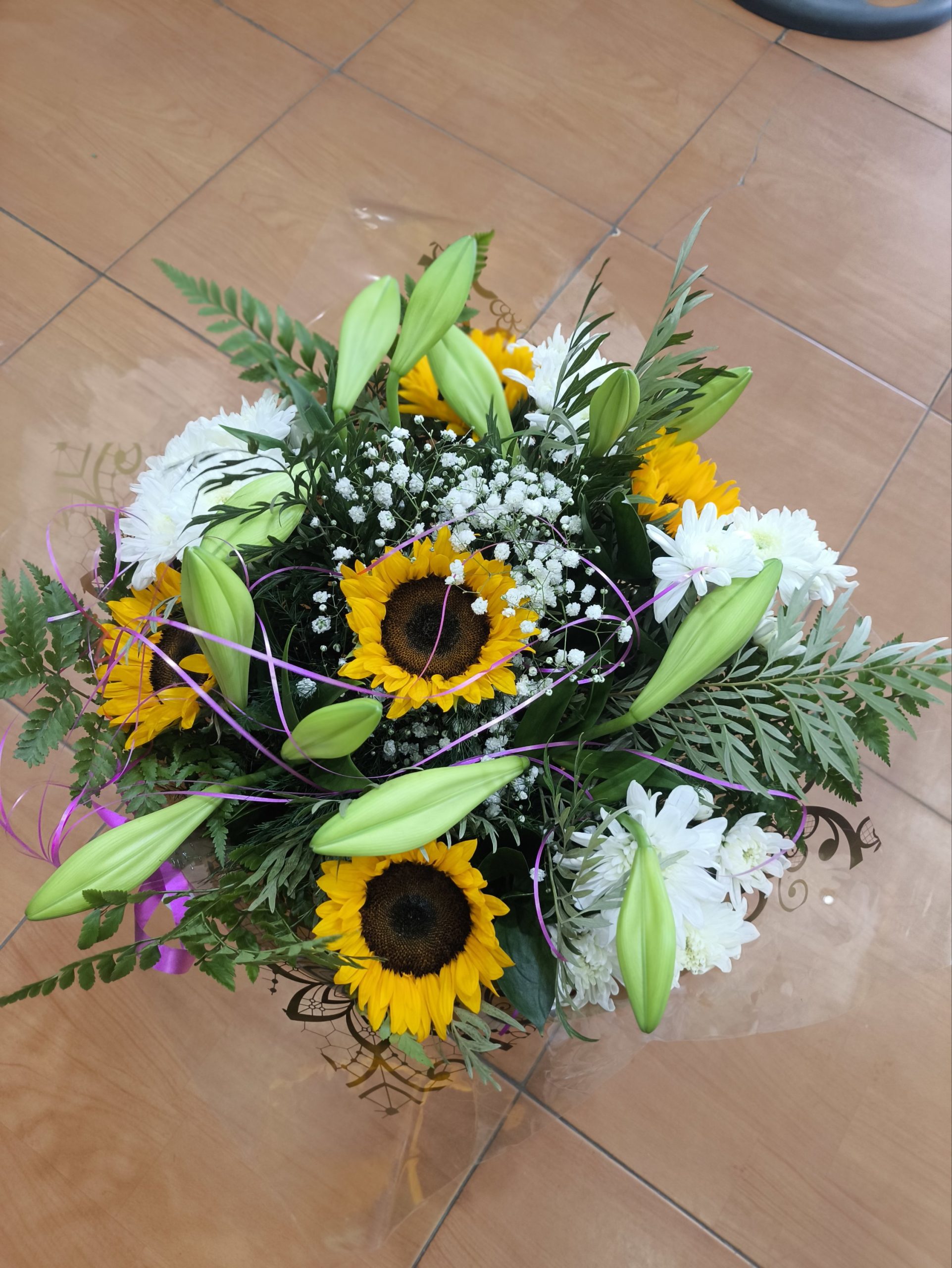 זר פרחים מיוחד שמשלב חמניות זוהרות שמביאות איתן אור ואופטימיות, חרציות צבעוניות שמוסיפות שמחה ויופי, ושושן צחור מלא הדר שמעניק לזר טאצ’ יוקרתי וחגיגי.